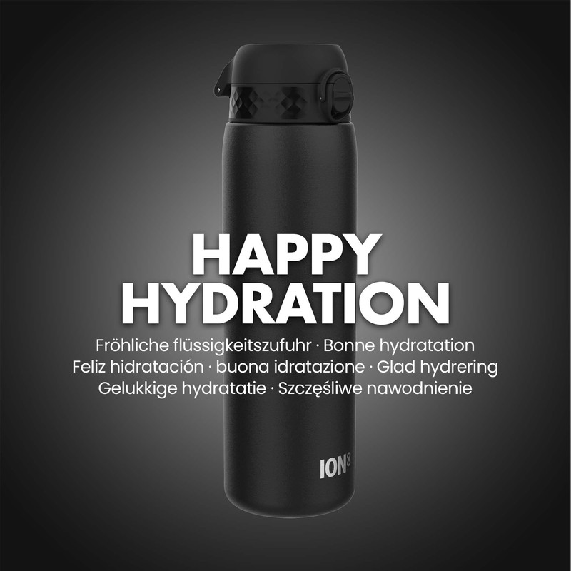 Ion8 Leak-Proof 1 Litre Water Bottle, Stainless Steel, Black, 1200 ml