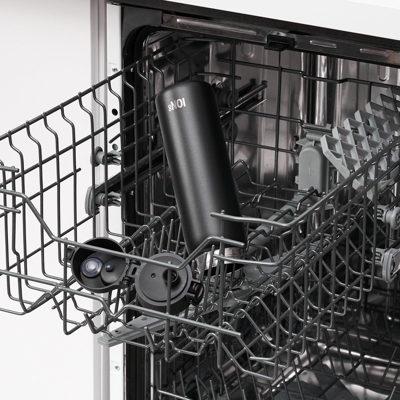 ION8 Steel Water Bottle, 600 ml/20 oz, Leak Proof, Easy to Open, Secure Lock, Dishwasher Safe, Hygienic Flip Cover, Fits Cup Holders, Carry Handle, Durable, Scratch Resistant, Carbon Neutral, Black