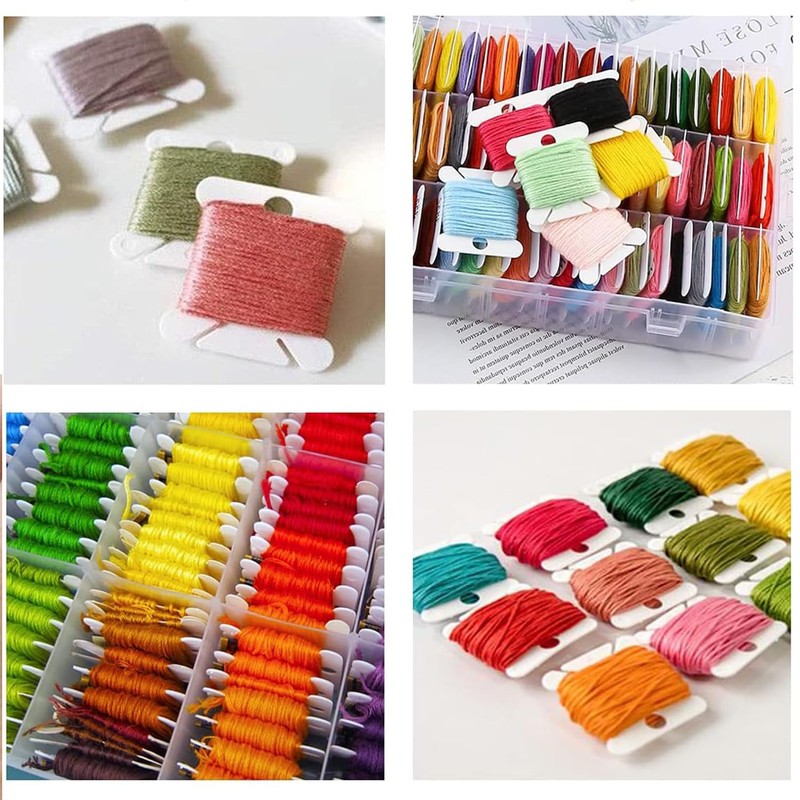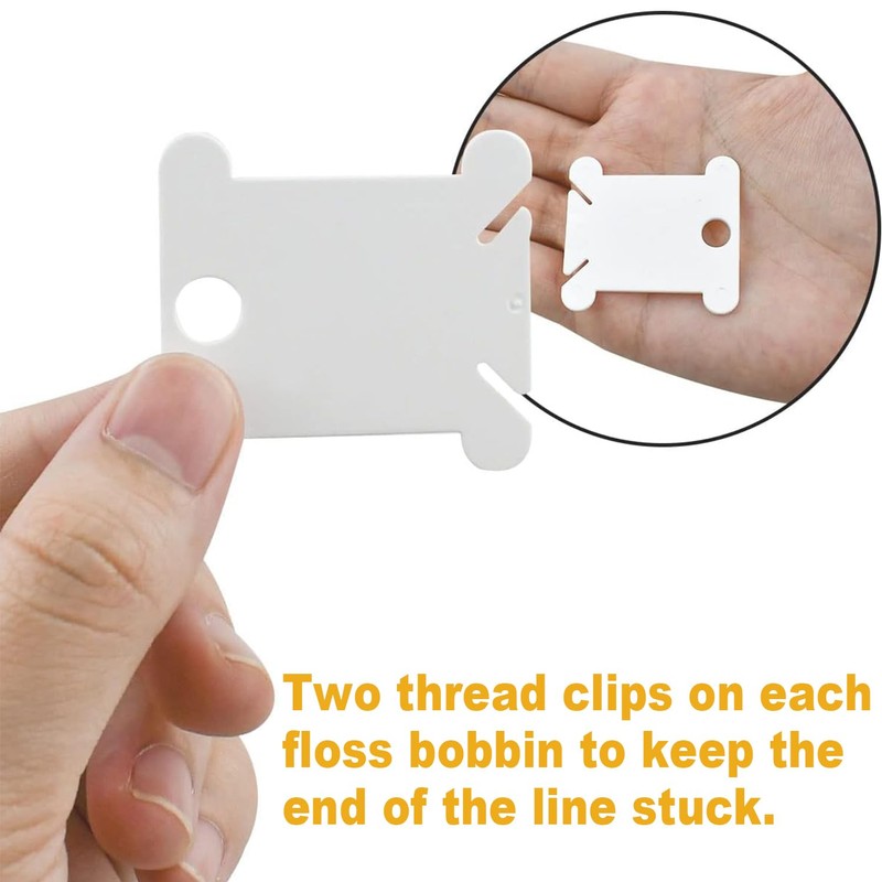 - 【Thoughtful & Functional Design】:Each plastic floss bobbin features dual thread clips to secure loose threads and a hanging hole for easy storage. The compact 3.8 x 3.5 x 0.1cm/1.49 x 1.37 x 0.04in size ensures space-saving organization.