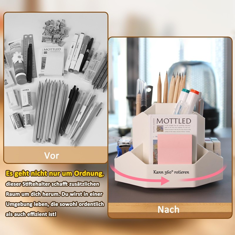 - 1. 360° rotating design - Everything at hand. The IOO6Z8SY rotating pen holder has a 360° rotating base that allows you to easily reach your stationery or small items. Whether learning, working or crafting - a simple twist is enough and everything is immediately at hand!