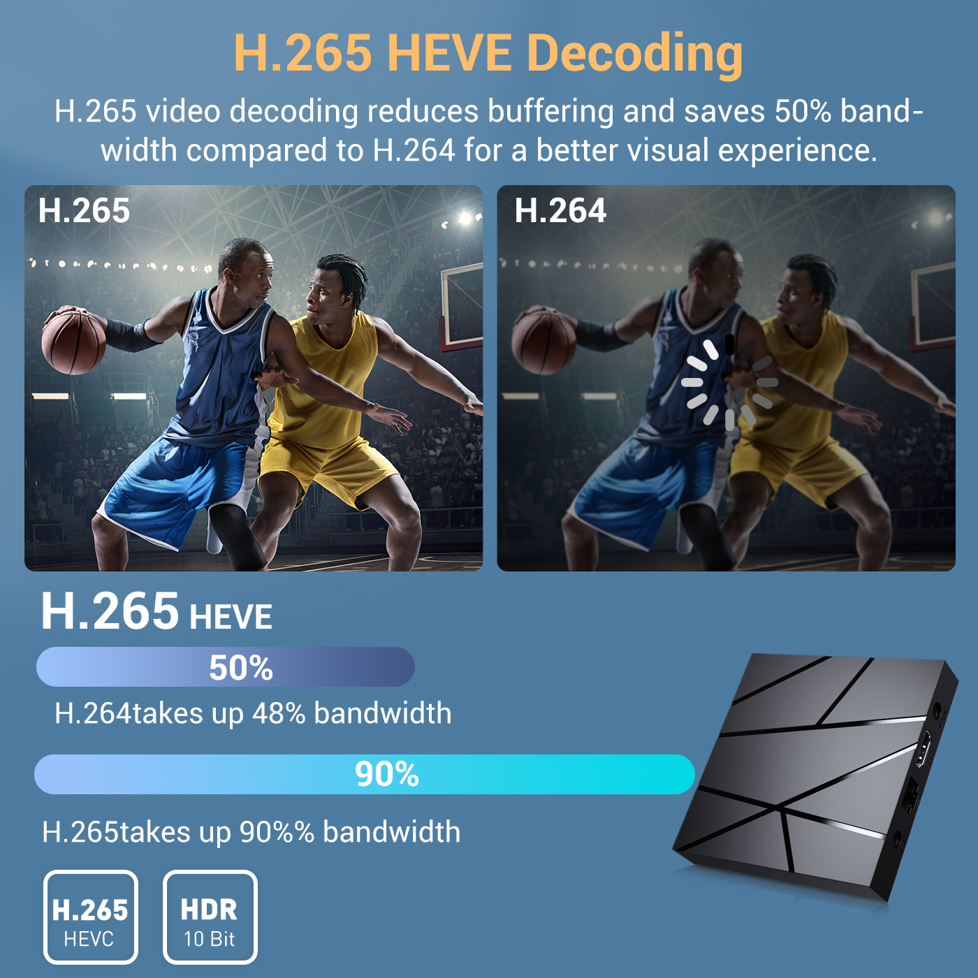 The T95 Android TV Box empowers users with the ability to decode and play back nearly all prevalent audio and video formats. Immerse yourself in the vividness of crisp 6K HD videos, which flaunt a resolution that surpasses even that of 4K. Engage in playing thousands of Android games on a generously sized 6K screen, and relish a top-notch experience with negligible buffering. Moreover, this remarkable TV box extends support for 3D playback, presenting you with a sumptuous visual extravaganza. (*Kindly note that for a seamless 6K and 3D experience, your other associated devices must also possess corresponding support capabilities.)