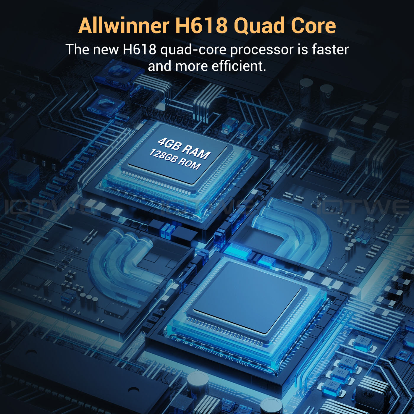 The Android TV box, equipped with Android 13.0, guarantees a stable and seamless loading of films, images, and games without any buffering. It offers an enhanced performance and usability, presenting a smooth and steady interface. Powered by the robust Allwinner H618 quad-core processor and advanced image processing technology, you can relish an extraordinary experience with rapid operation speed and professional-grade image quality.