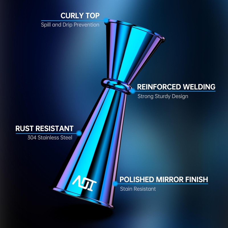 - PREMIUM DESIGN: Igniting your obsession for vibrance! IOV designed the jigger in colorful colors, making it vibrant. The polished mirror finish gives it a modern look, versatile and elegant bar measuring jigger that lets you pour with confidence. This cocktail jigger is also dishwasher safe.