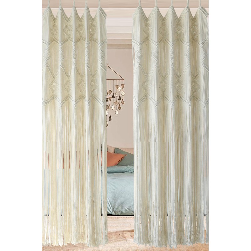 - Installation is a breeze: Our macrame curtains come with a built-in loop at the top, perfect for hanging on your curtain rod or sticking as a bed headboard. Simply slide the rod through the loop, and adjust to your desired placement.