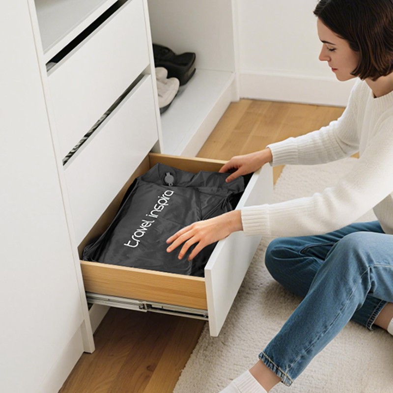 - SPACE SAVING DESIGN: Vacuum storage bag with pump compresses clothing and bedding to maximize suitcase and backpack space during travel
