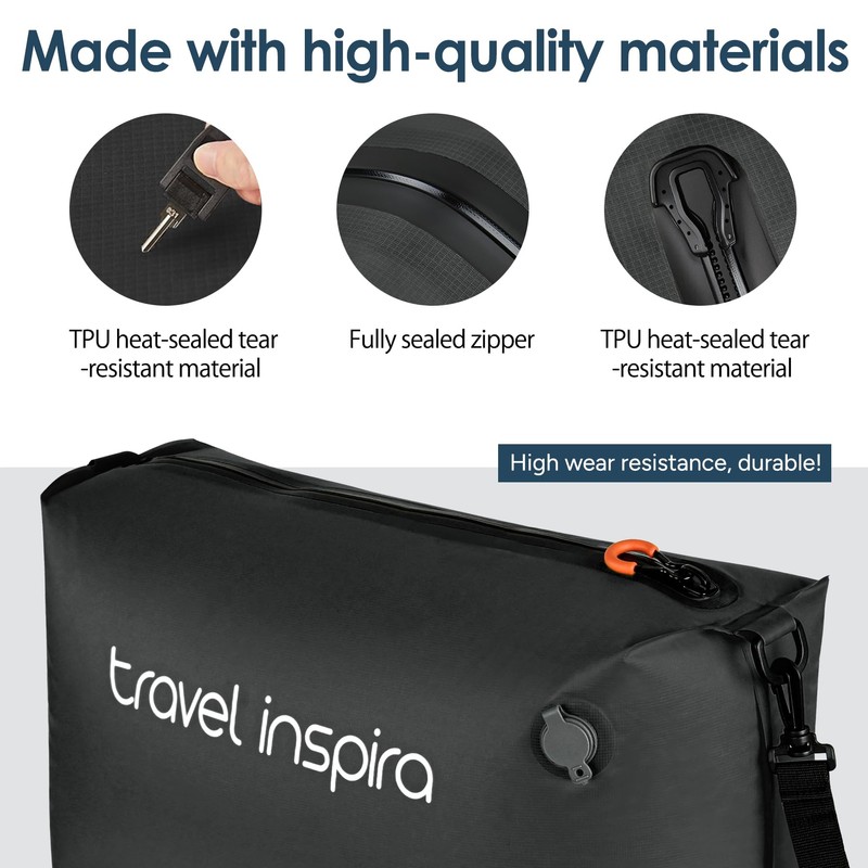 IP67 Waterproof Vacuum Compression Bags (1 Bag + Pump) - Travel Space Saver with Shoulder Strap, Black, Reusable for Luggage, Backpack, Suitcase