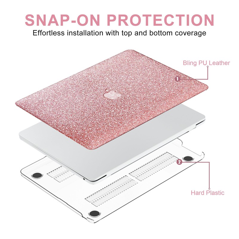 - Made of bling premium PU leather coating durable plastic to provide your Laptop with great all round protection. Compact design matching flash shining rose gold color with comfortable touching make your device fashionable and attractive