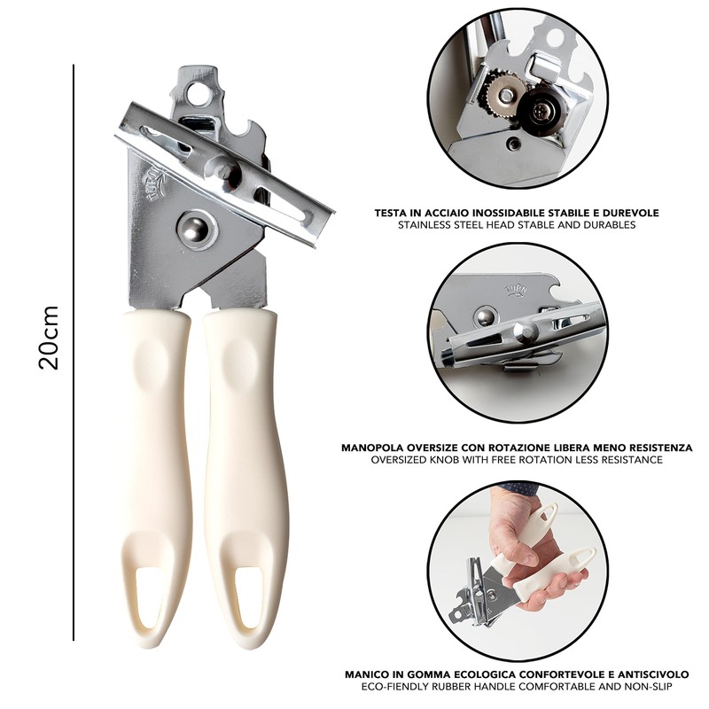 - Easy to use: the comfort handle of the can opener provides an ergonomic and comfortable grip during use. This design allows you to open the cans without tiring your hand and provides optimal control when opening.