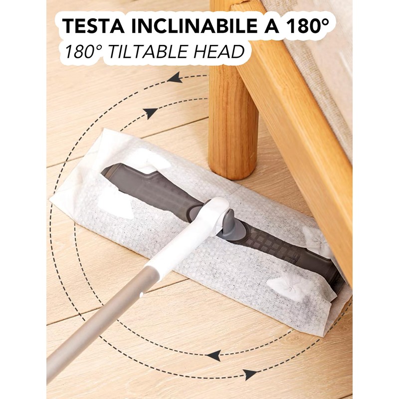- FLEXIBILITY IN CLEANING: The SwAPPY floor mop with 180 degree rotating head offers exceptional flexibility for cleaning floors and surfaces. Thanks to its rotating head, it can reach difficult corners and tight spaces and ensure complete and detailed cleaning.