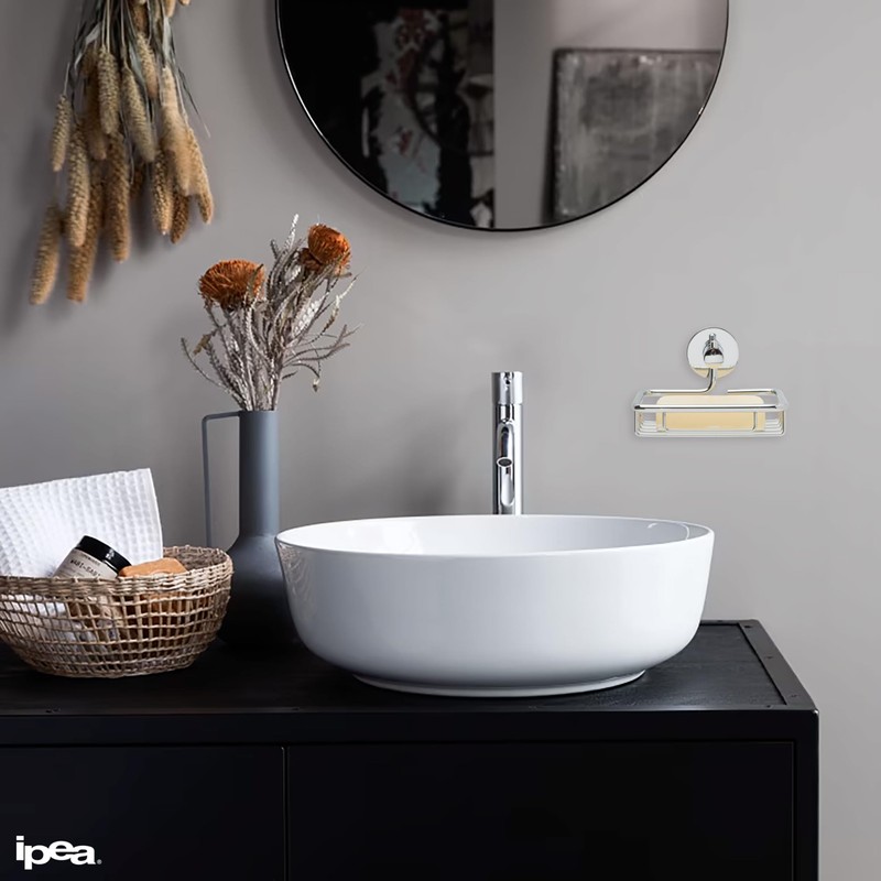 IPEA Selbstklebende Seifenschale aus Metall - Kein Bohren erforderlich - Modernes Design - Wandseifenhalter zum Kleben im Badezimmer, Dusche, Küche, Haushalt - Seifen- oder Schwammhalter - Offen
