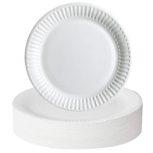 MULTIPLE USAGE: White paper plates are the ideal choice when catering for party, weddings and other events. These disposable plates feature a plastic coating, perfect for serving up food at BBQs, buffets and parties or for use in your takeaway and at catered events. Paper plates are popular choices for picnics, barbecues, camping trips, and other outdoor events. They allow for easy clean-up without the need for washing dishes.