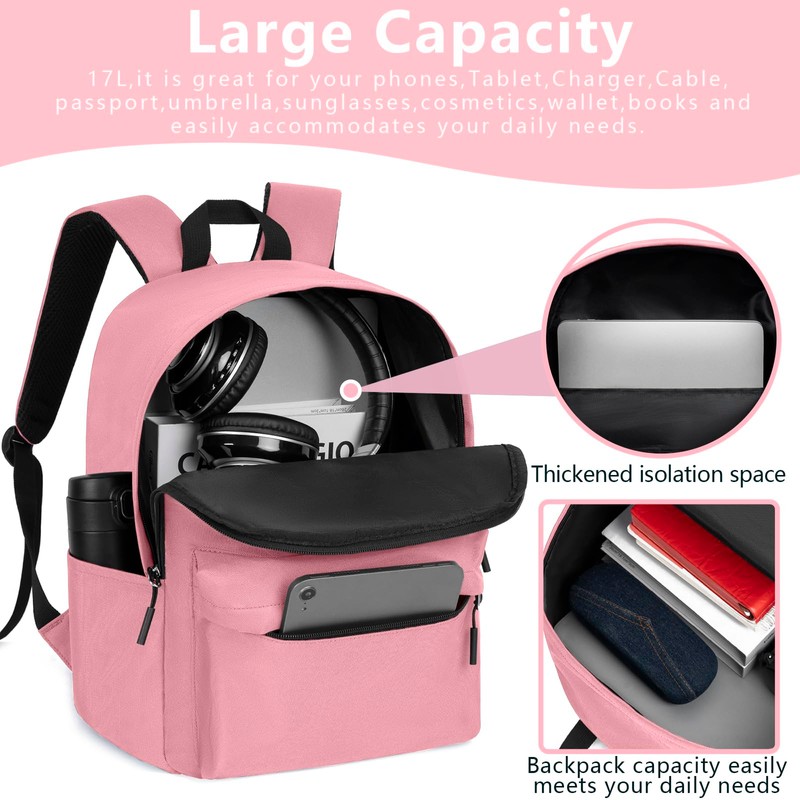 - Capacity:17L,it is 15inch which is great for your books,phones,Tablet,Charger,Cable,passport,umbrella,sunglasses,cosmetics,wallet and easily accommodates your daily needs
