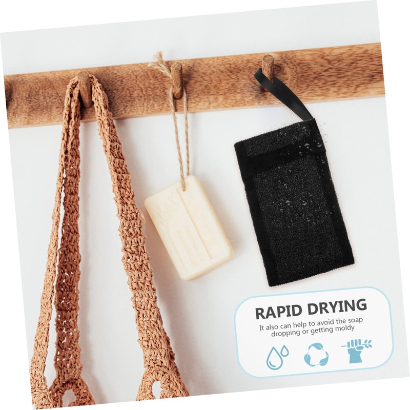 -Color: Black exfoliating soap bag.