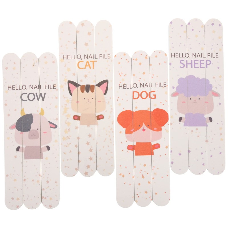 Ipetboom 12pcs Animal Nail File Fingernail Files Rectangular Nail Buffer Blocks Double-sided Polishing Buffer for Home Art