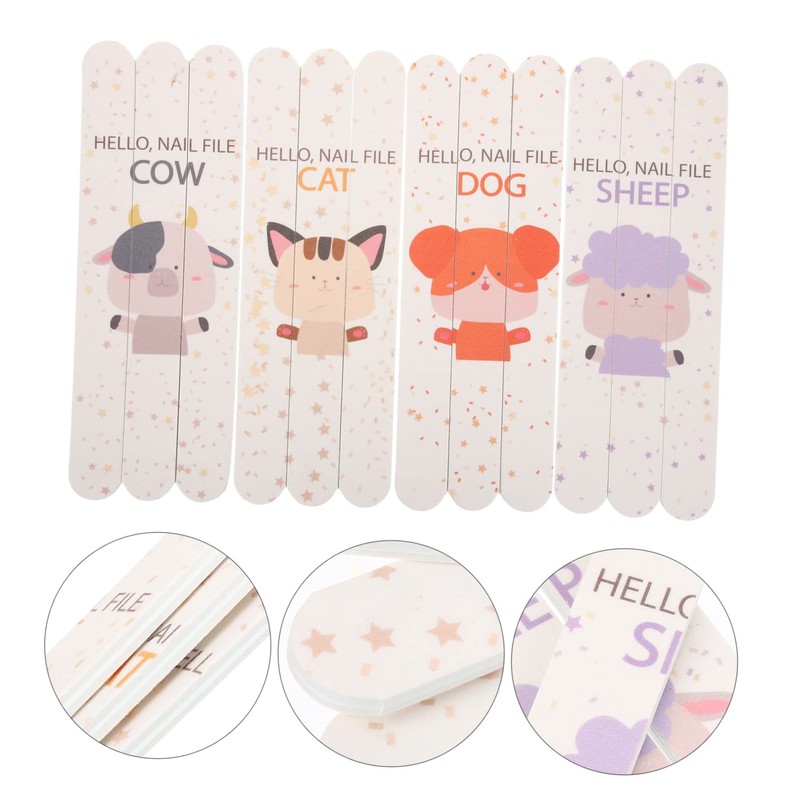 Ipetboom 12pcs Animal Nail File Fingernail Files Rectangular Nail Buffer Blocks Double-sided Polishing Buffer for Home Art