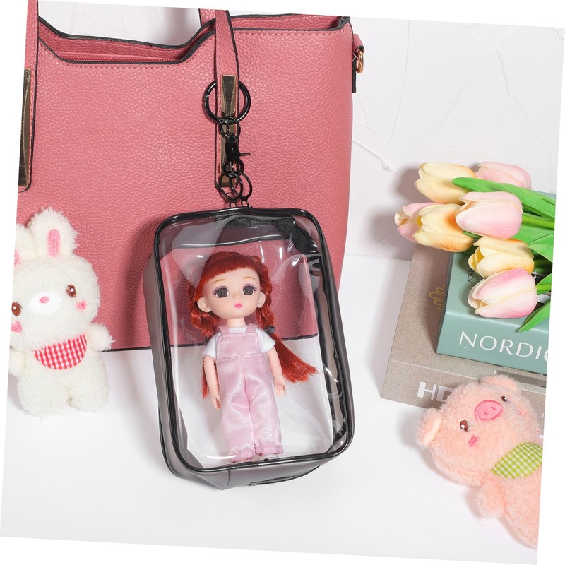 【Premium Materials】: The figurine display bag is made of transparent PVC plastic, featuring a keychain and random colored plush balls. It is dustproof and durable. Note: Dolls are not included.