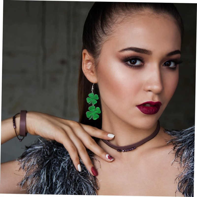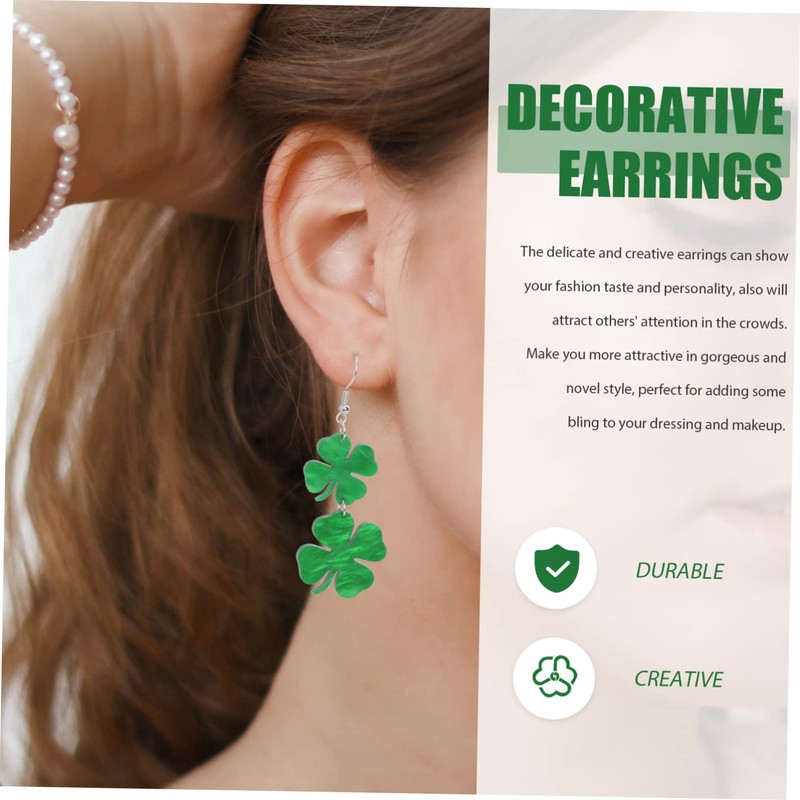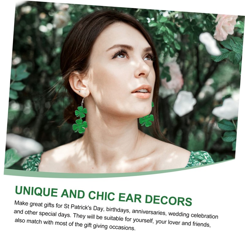 Ipetboom 2 Pairs Clover Design Earrings for St Patrick's Day Party Stylish Lady Ear Danglers for Celebrations for Birthdays and Special Occasions