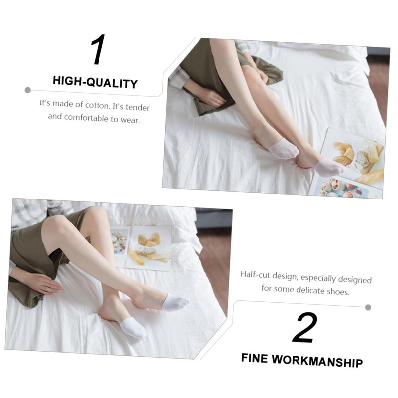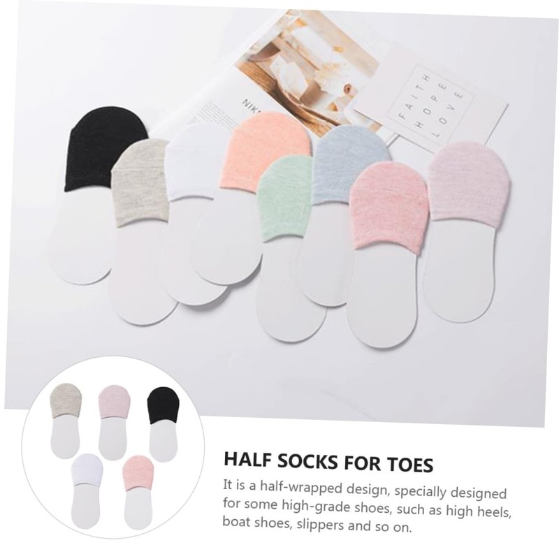 Half-socks When you put the and then put the shoes on, the sock does not show outside, it is invisible in these shoes.Comfortable Cotton Socks for Toes It is a half-wrapped design, specially designed for some high-grade shoes, such as high heels, boat shoes, slippers and so on.Cotton Non-slip Socks Summer is here, are you looking pair of socks for your nice shoes? Look at this sock.Skidproof Toe Socks It is especially convenient to use in summer