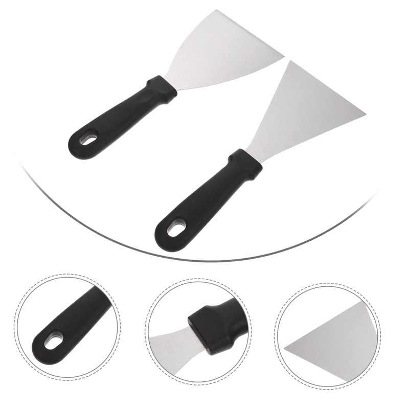 Ipetboom 2Pcs Stainless Steel Multi Function Spatulas with Plastic Handles for Teppanyaki BBQ Pizza Pancakes and Steak Cooking Accessories