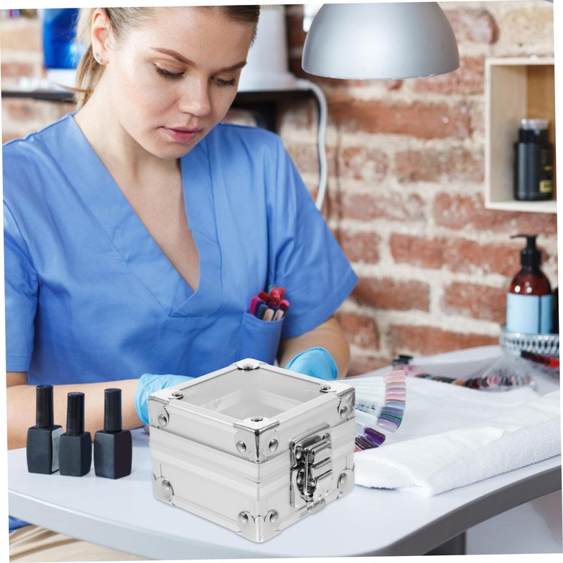 Ipetboom Professional Nail Drill Bits Storage Box Dustproof Zinc Alloy Container for Manicure Supplies Neat and Organized Polisher Holder for Nail Salons