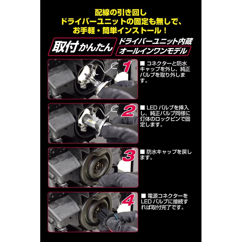 - Brightness: 4,000 lm (high beam) / 3,200 lm (low beam) * Total value of 2 bulbs