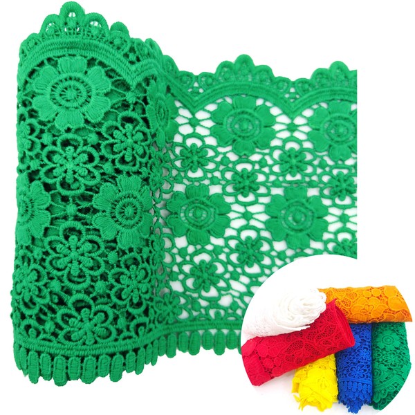 IPHENIX - Flor de encaje verde de 5 yardas para coser 6.5 pulgadas de ancho, suave y cómodo para la piel, patrón de flores, manualidades, ropa de borde, cinta de borde