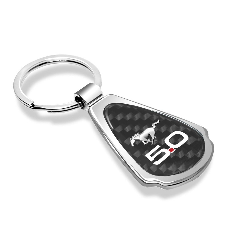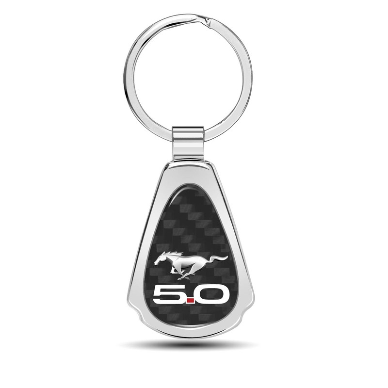 iPick Image Compatible with Ford Mustang 5.0 Real Black Carbon Fiber Chrome Metal Teardrop Key Chain