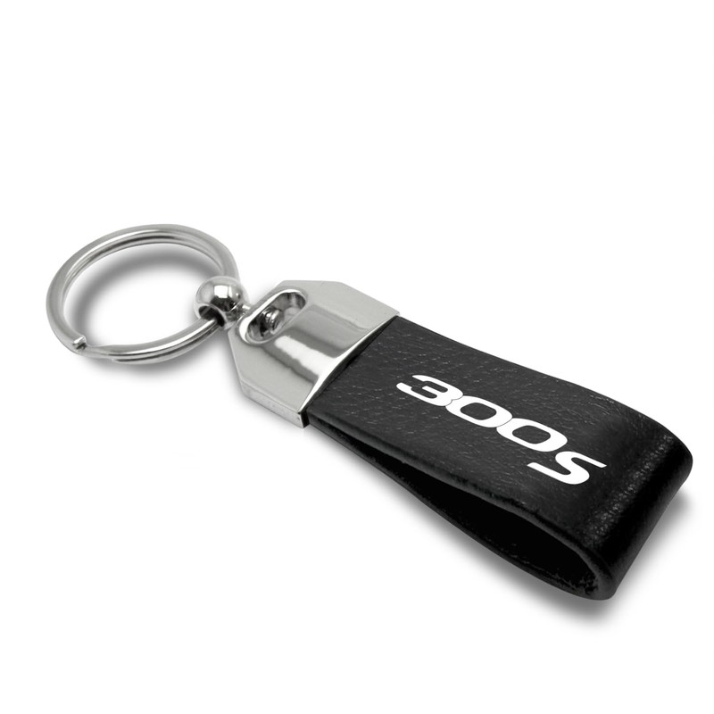 iPick Image for Chrysler 300S Black Real Leather Loop Strap Chrome Metal Key Chain Keychain, Official Licensed