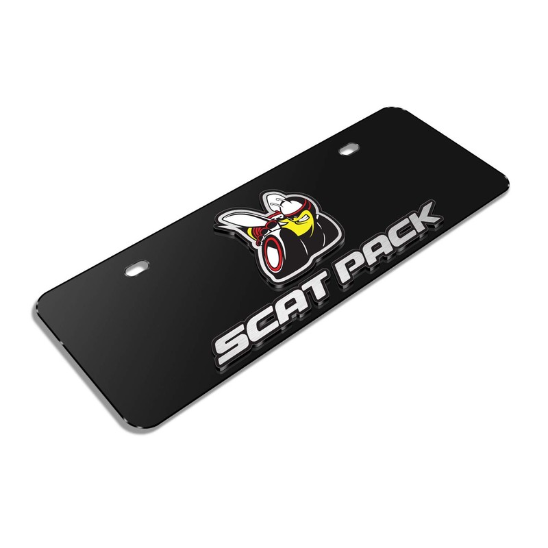 iPick Image for Dodge Scat-Pack 3D Logo 12" x 4.25" European Look Black Half-Size Stainless Steel License Plate for Decorative