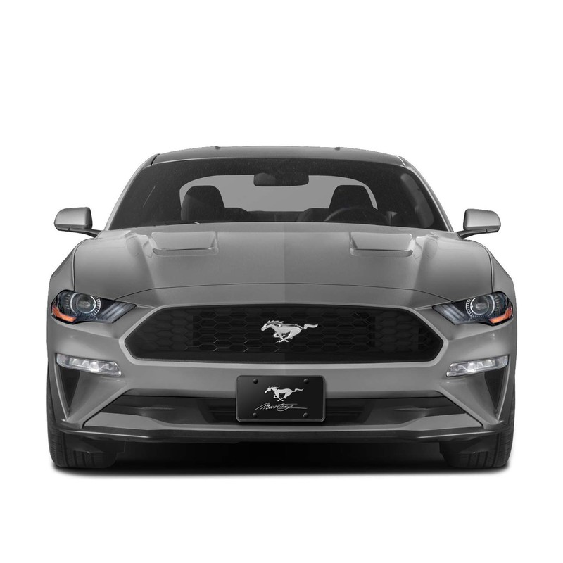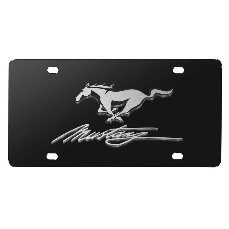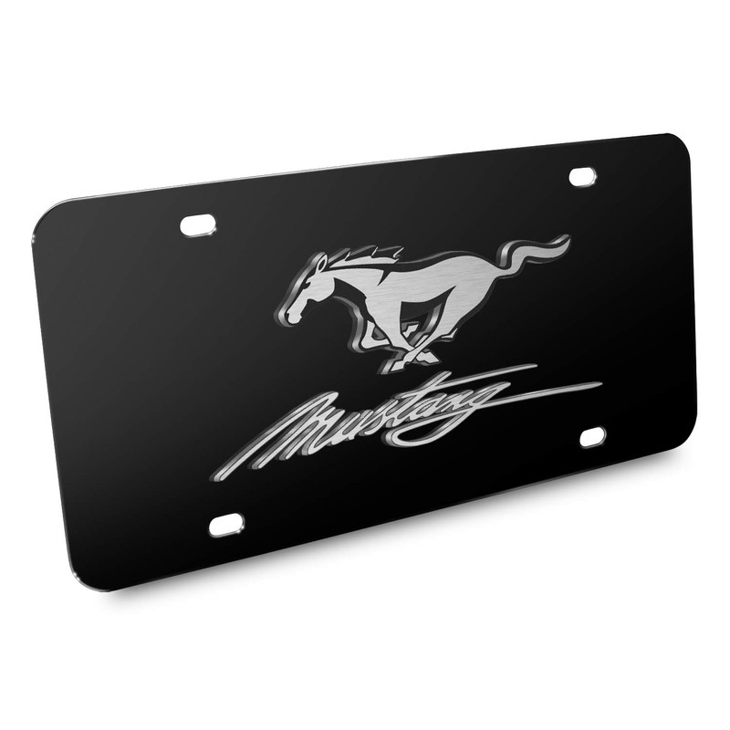 iPick Image for Ford Mustang Pony and Script 3D Logo Black Stainless Steel License Plate