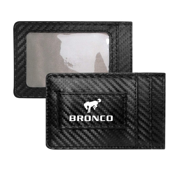 iPick Image Ford Bronco Black Carbon Fiber Leather Wallet RFID Block Card Case Money Holder, 4-3/8" x 2-3/4"