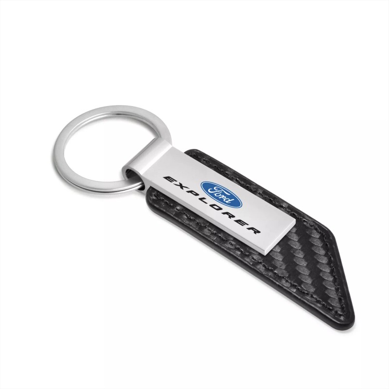 iPick Image Ford Explorer Carbon Fiber Texture Black PU Leather Strap Key Chain