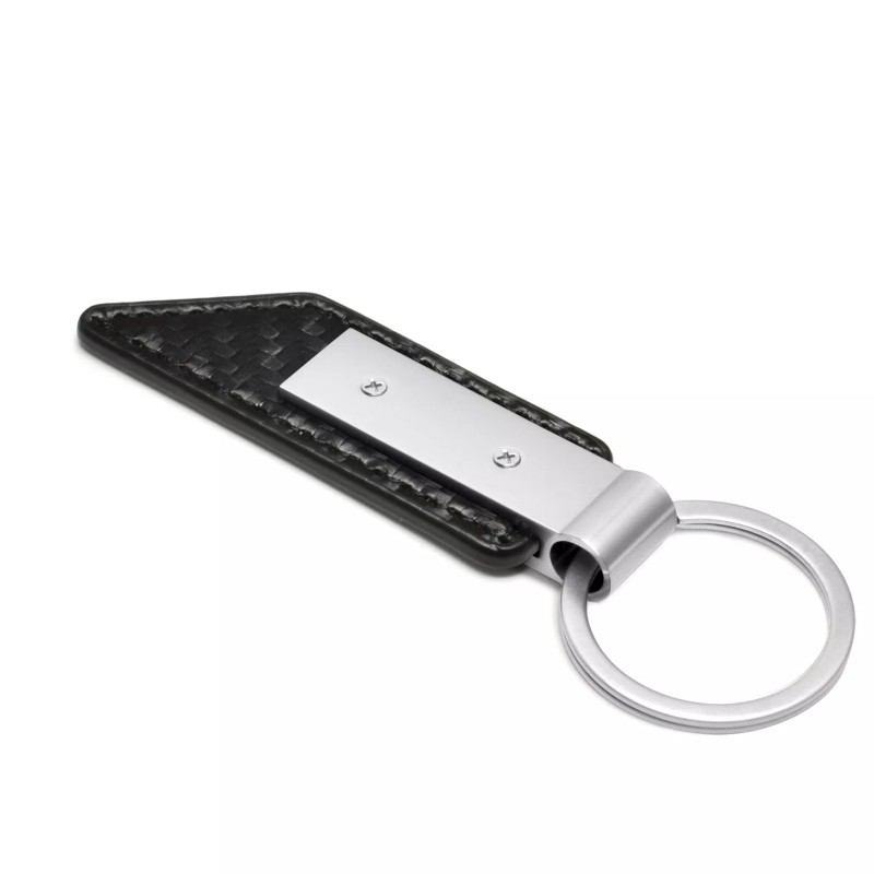 High-quality black PU leather with carbon fiber texture. Flat split key ring.