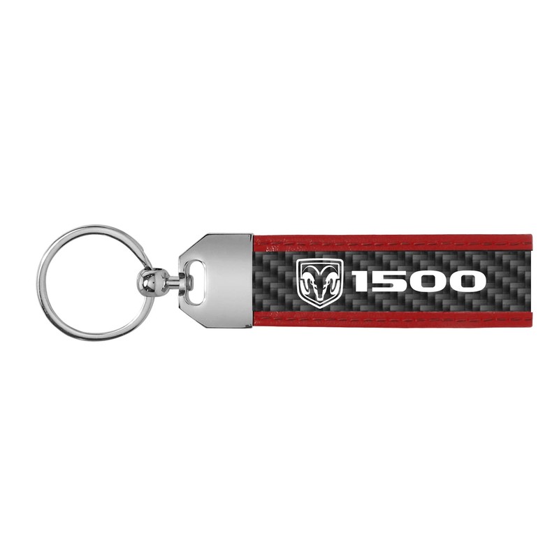 iPick Image Made for RAM 1500 Logo Real Carbon Fiber Strap with Red Leather Stitching Edge Key Chain