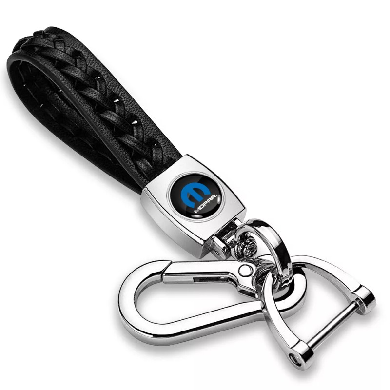 iPick Image Mopar in Black Braided Rope Style Genuine Leather Chrome Hook Key Chain