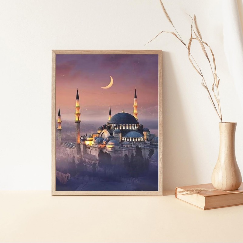 IPISSOI DIY 5D Diamond Embroidery Painting Muslim Religion Mosque Rhinestone Kit Full Round Drill Mosaic Landscape Handmade 12x16 Inch