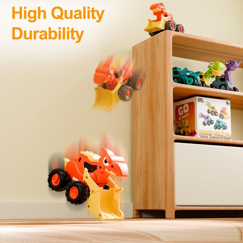 iPlay, iLearn Dinosaur Truck Toys for Toddlers, Boys Dino Press Go Racing Cars, Kids Construction Sandbox Vehicles Playset, Baby Push Go Friction Car Set, Birthday Gift for 18 Months 2 3 4 5 Years Old