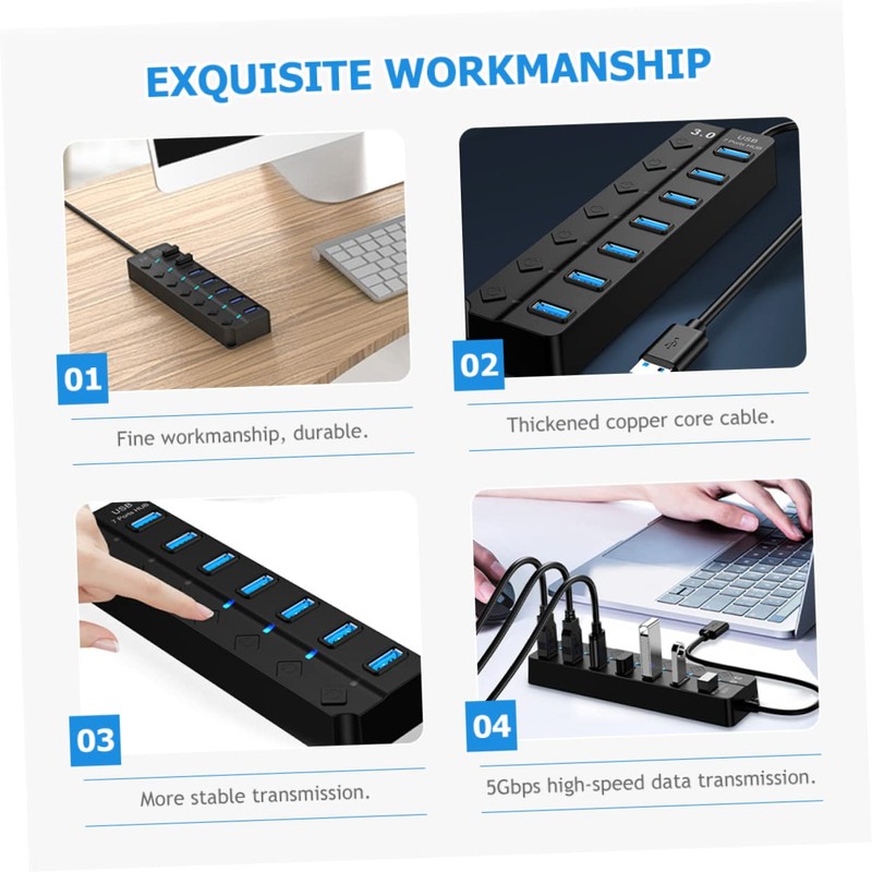 - 7 port USB hub--multi-port USB interface, more convenient for file exchange and easy to take care of work and gaming,multi USB port