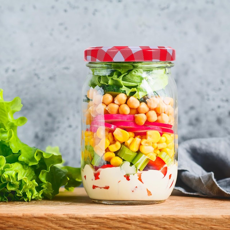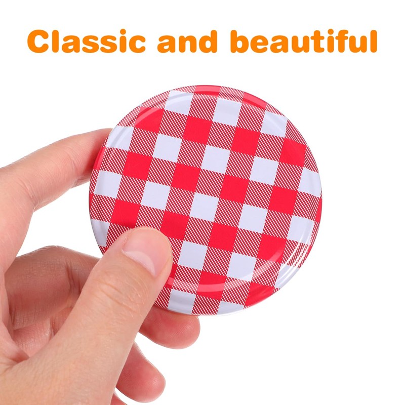 - Classic plaid design: these mason jar lids feature a bright red and white check design, a classic plaid design that can decorate your mason jars and add color to your kitchen or pantry