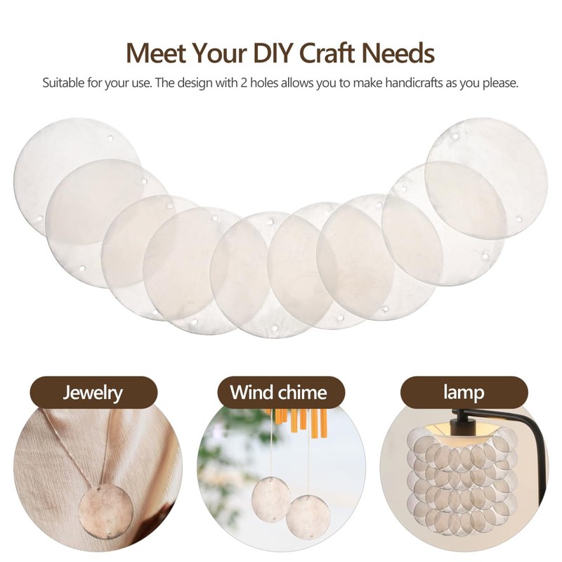 - Wide application: round natural shells are particularly suitable for handmade DIY work and can be processed into various decorations such as wind chimes, curtains, lampshades, shell garlands, shell mirrors, pendants and other crafts. They are suitable for different places such as bedroom, living room, study, gardens, etc.