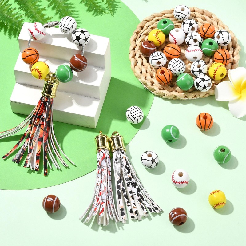 Sports Themed Design: Featuring ball game wooden beads kits with tassel charms, these ball theme loose beads are suitable for creating sports-themed fashionable accessories and unique decor items that stand out in any creative project