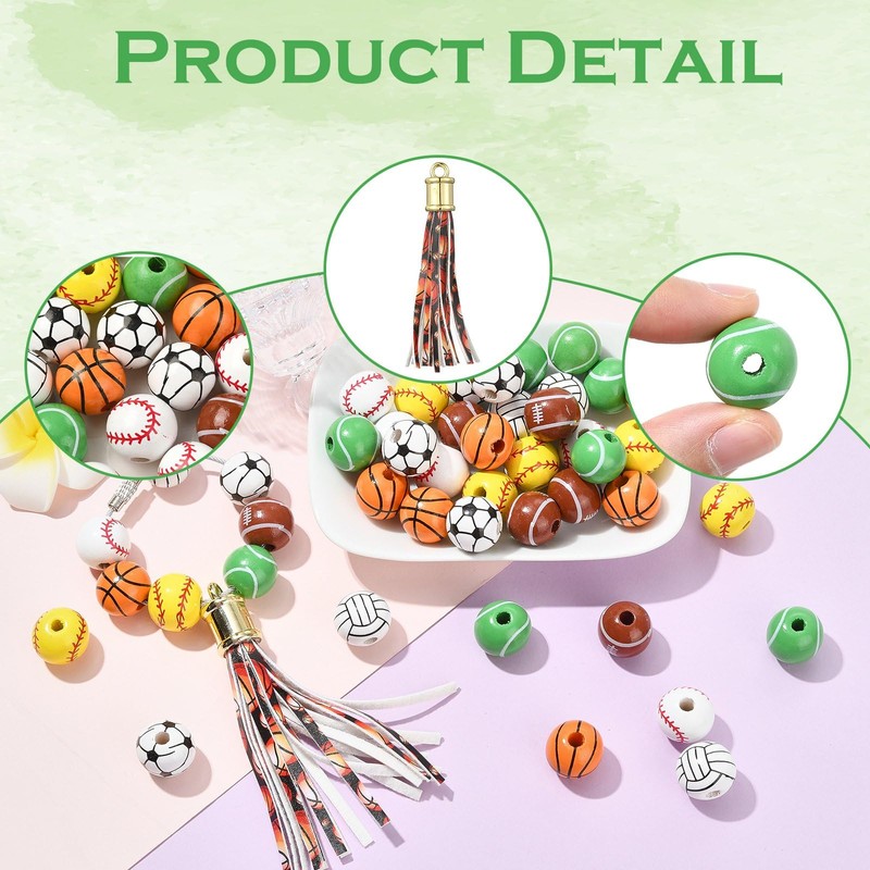 - Sports Themed Design: Featuring ball game wooden beads kits with tassel charms, these ball theme loose beads are suitable for creating sports-themed fashionable accessories and unique decor items that stand out in any creative project