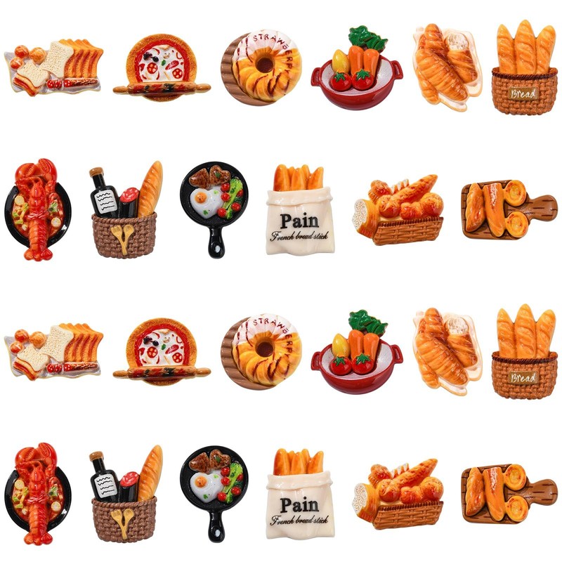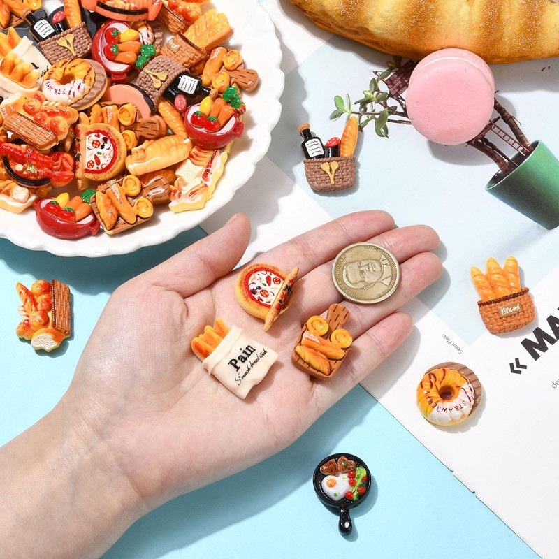Ipotkitt 60pcs 12 Styles Baking Theme Resin Cabochons Bread Vegetable Pizza S...