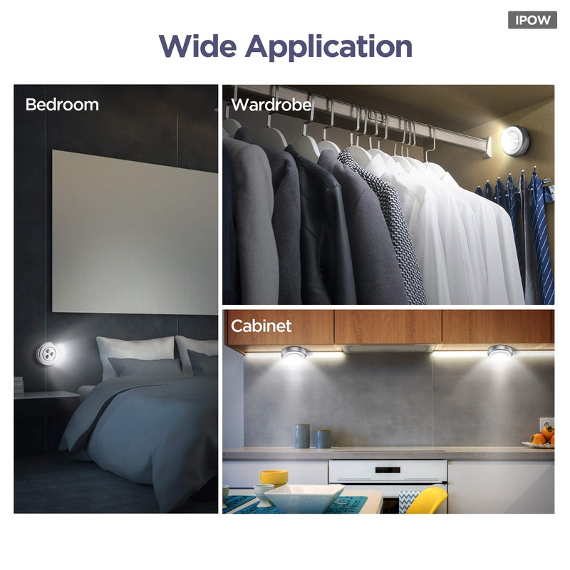 IPOW 5 Pack LED Battery-Powered Wireless Night Light Stick Tap Touch Lamp Stick-on Push Light for Closets, Cabinets, Counters, or Utility Rooms,Cordless Touch Light,Batteris Not Included
