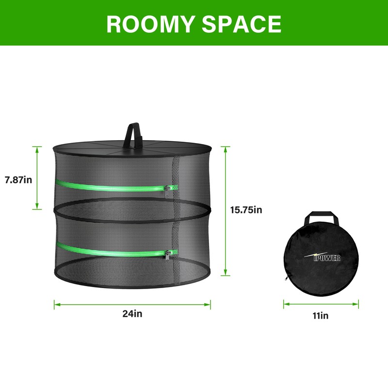 - Size: 24in diameter, 2 layers, about 8in height for each layer, large ventilation space for drying your plants. Allow quick and even drying as well as 360-degree access for tending and manicuring your harvest. Easy to clean.