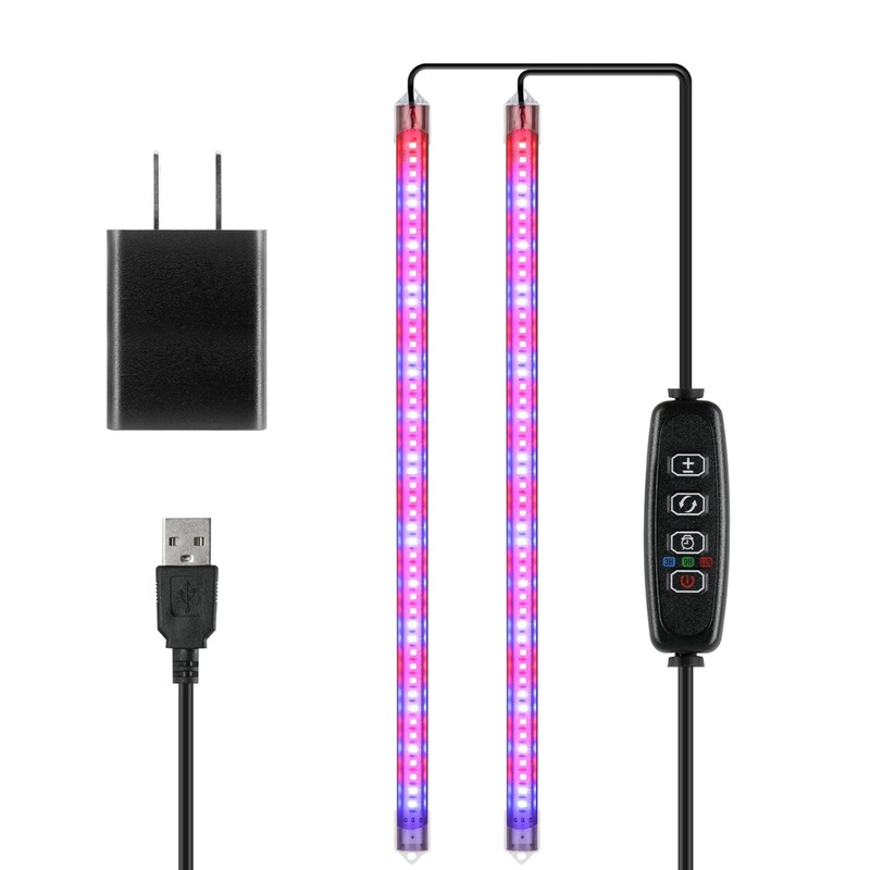 iPower LED Plant Growing lamp, Full Spectrum Grow Light Strips for Indoor Plants with 3/9/12H Timer & 10 Dimmable Levels, 48 LEDs Per Tube x 2