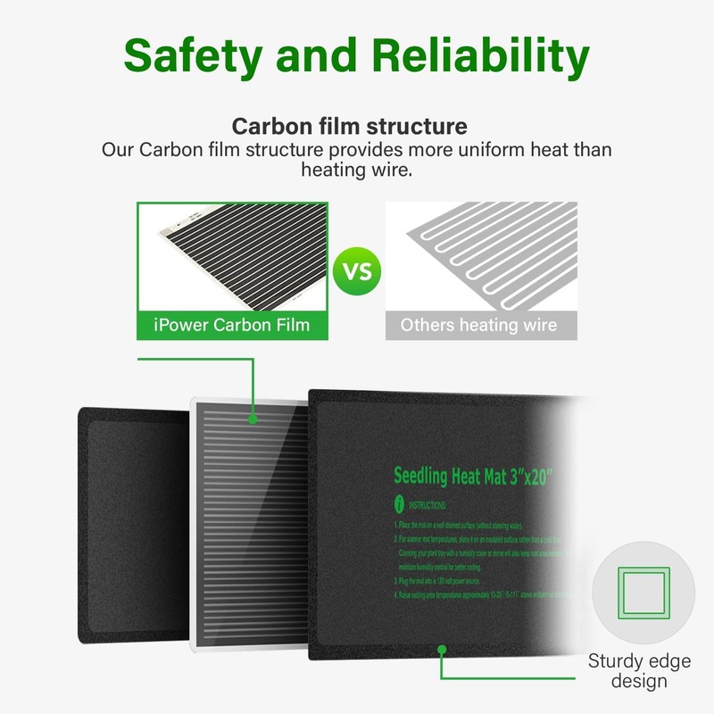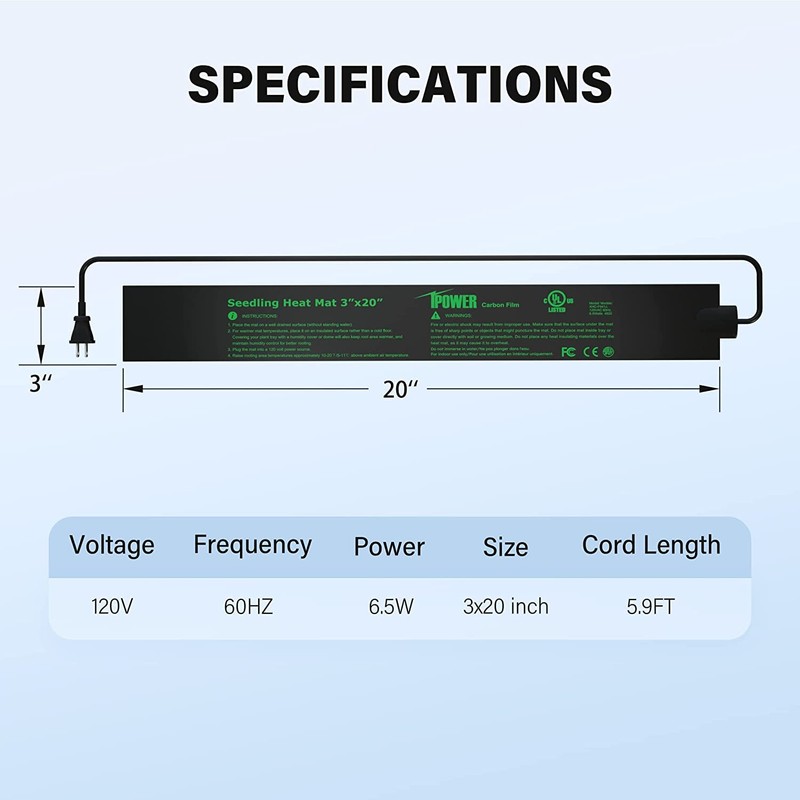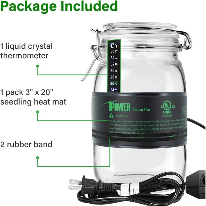 • Package Included: 1 pack 3'' x 20" seedling heat mat, two rubber band and a liquid crystal thermometer.