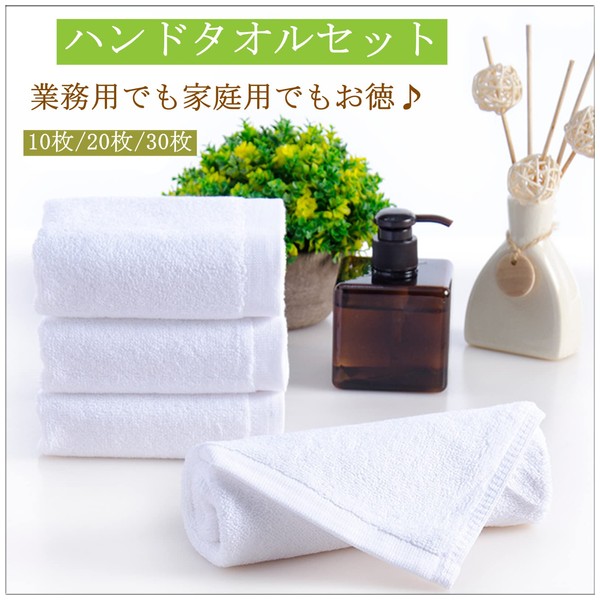 IPPON Hand Towels, Hot Towels, Commercial Use, Set of 10, Cotton, Plain, Thick, Dish Towels, Water Absorbent, Quick Drying, Durable, Washcloth, Approx. 1.0 oz (30 g), White, 11.0 x 11.0 inches (28 x