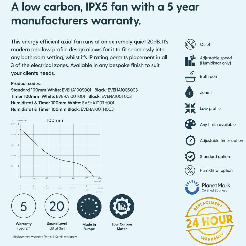A low carbon, IP45 fan with a 5 year manufacturers warranty from Everything Ventilation