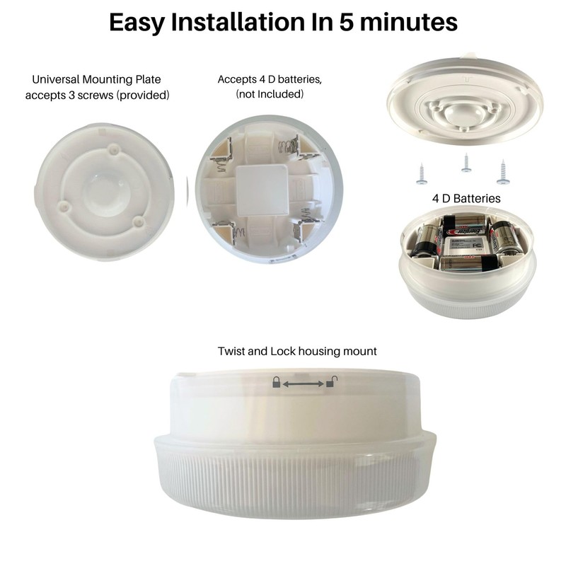 - Perfect for homes, sheds, patios, self-storage, docks and more!, Dimensions and Lumen Output: 5" diameter, 3" high, 450 Lumens, 40W, 4000K Bright Light